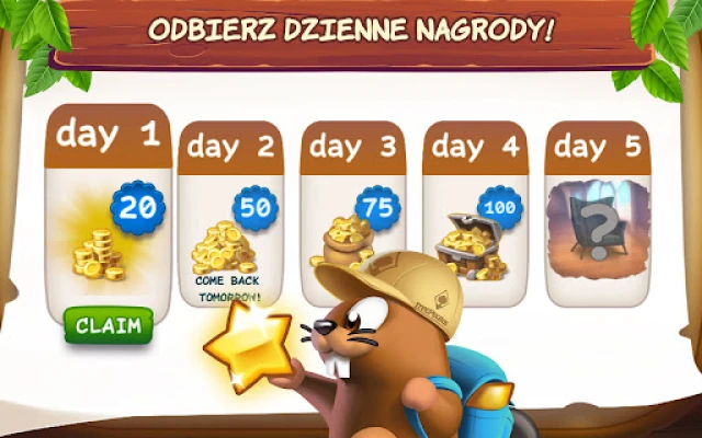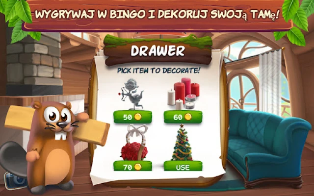Przygotuj się na niekończącą się przygodę pełną nagród! Realizuj codzienne wyzwania, odbieraj hojne bonusy każdego dnia i kręć kołem fortuny po dodatkowe niespodzianki. Uczestnicz w unikalnych wydarzeniach czasowych, które oferują jeszcze więcej emocji i szans na zwycięstwo. Przemieniaj swoje wygrane w nowe meble i akcesoria, które pozwolą Ci udekorować tamę dokładnie tak, jak chcesz, korzystając również z bogatej kolekcji sezonowych dekoracji, aby zawsze zachować świeży i stylowy wygląd. Graj w Bingo i buduj swój wymarzony dom już dziś!