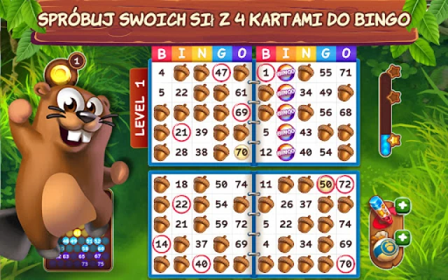 Pozwól sobie na chwilę relaksu w tej wciągającej rozgrywce, dostępnej w pełni za darmo i idealnej do zabawy nawet bez dostępu do internetu. Dostosuj tempo wywoływania liczb, wybierz ulubionego lektora – męski lub damski głos – i zwiększ swoje szanse, grając jednocześnie na dwóch, a nawet czterech kartach! Wykorzystaj sprytne ulepszacze, takie jak Szczęśliwy Traf, precyzyjny Marker czy Losowe Pokrywki, aby zwiększyć swoje wygrane i zbieraj specjalne znaczniki, odnajdując ukryte elementy układanek. Każda rozgrywka to krok bliżej do idealnego domu dla Twojego bobra.