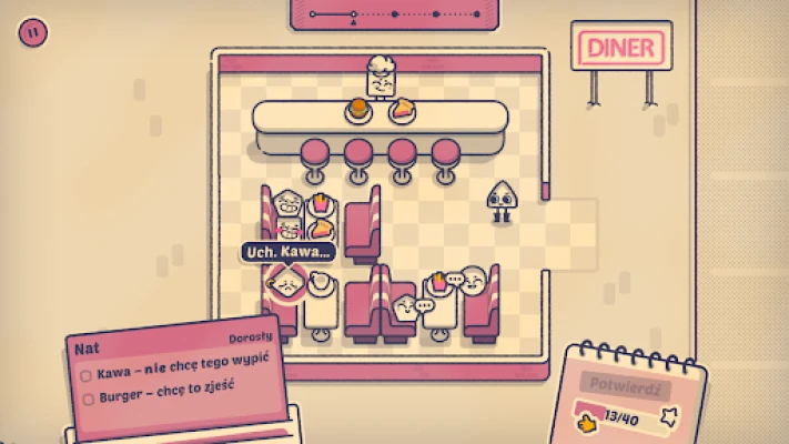 W grze Is This Seat Taken? wybierasz idealne miejsca dla grupy kształtów. Musisz zdecydować, kto siedzi przy oknie, kto od wyjścia, przy dużym czy małym stoliku, biorąc pod uwagę czy to samotnik, czy dusza towarzystwa. To przyjemna łamigłówka bez presji czasu, gdzie liczy się sprytne dopasowanie.