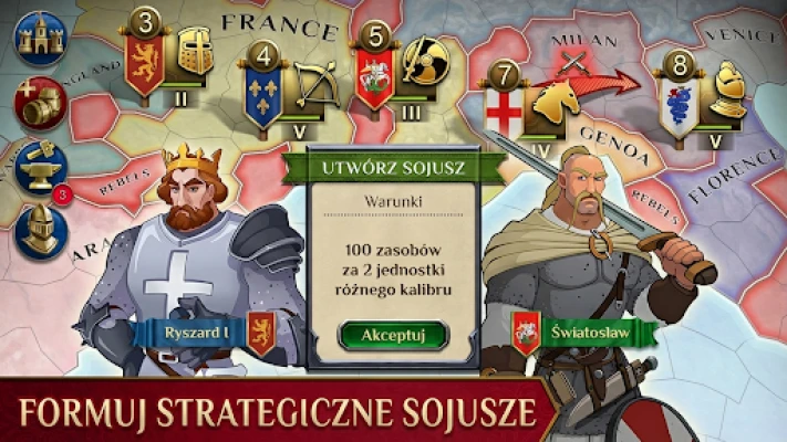 Swoboda w Timelines to nie tylko wybór trybu piaskownicy, gdzie kształtujesz Europę według własnego uznania, ale także możliwość odegrania z góry zdefiniowanych misji fabularnych. Od historycznych oddziałów, takich jak górale czy Krzyżacy, po mityczne bestie – zbuduj armię godną największych strategicznych wyzwań. Poprowadź ikonicznych przywódców, takich jak Joanna d'Arc, Światosław czy Ryszard Lwie Serce, wykorzystując ich unikalne mocne strony, aby zapewnić dominację swojej cywilizacji. Timelines to synonim prawdziwej strategii mobilnej, w której każdy ruch ma znaczenie, a drzewka technologiczne i dynamiczna dyplomacja tworzą spójny, angażujący świat.