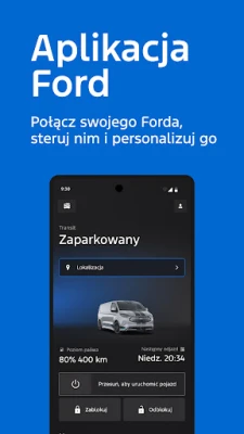 Aplikacja Ford to Twój osobisty asystent w zarządzaniu pojazdem. Monitoruj kluczowe informacje, takie jak poziom paliwa lub zasięg, a także zagłębiaj się w szczegółowe statystyki użytkowania. Wykorzystaj innowacyjną funkcję „Telefon jako klucz", aby w pełni kontrolować dostęp do swojego samochodu. Planowanie przeglądów serwisowych nigdy nie było prostsze – wybierz preferowanego dealera i zarezerwuj wizytę, by Twój Ford zawsze pozostawał w doskonałej kondycji. Właściciele pojazdów elektrycznych docenią możliwość zdalnej kontroli poziomu naładowania, wstępnego przygotowania pojazdu oraz dostęp do map publicznych punktów ładowania.