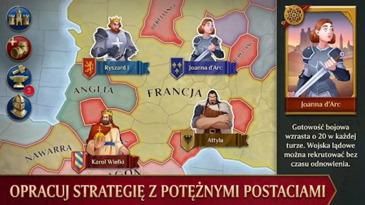 Swoboda w Timelines to nie tylko wybór trybu piaskownicy, gdzie kształtujesz Europę według własnego uznania, ale także możliwość odegrania z góry zdefiniowanych misji fabularnych. Od historycznych oddziałów, takich jak górale czy Krzyżacy, po mityczne bestie – zbuduj armię godną największych strategicznych wyzwań. Poprowadź ikonicznych przywódców, takich jak Joanna d'Arc, Światosław czy Ryszard Lwie Serce, wykorzystując ich unikalne mocne strony, aby zapewnić dominację swojej cywilizacji. Timelines to synonim prawdziwej strategii mobilnej, w której każdy ruch ma znaczenie, a drzewka technologiczne i dynamiczna dyplomacja tworzą spójny, angażujący świat.